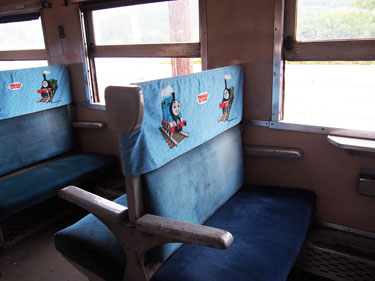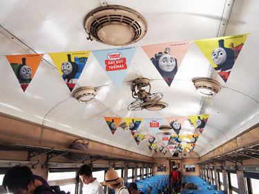 味わいのある古い客車内はトーマス一色に飾られて!!