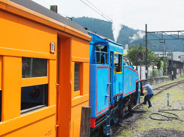 千頭駅を出発するトーマス号はポッポ~~と元気よく汽笛を鳴らします。