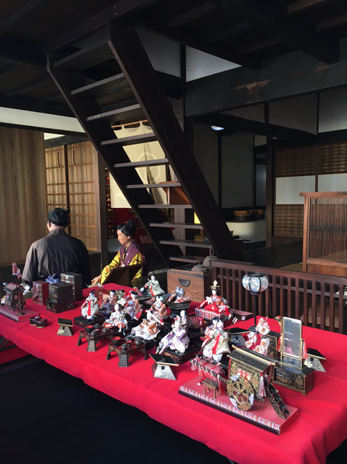 ↓ 旅籠屋に飾られた雛人形。ロウ人形の背中の肉感?が妙にリアル~☆