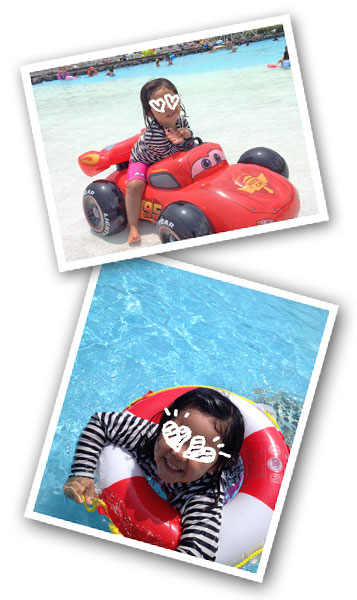 ムスメは浮き輪やフロートに乗りながら、