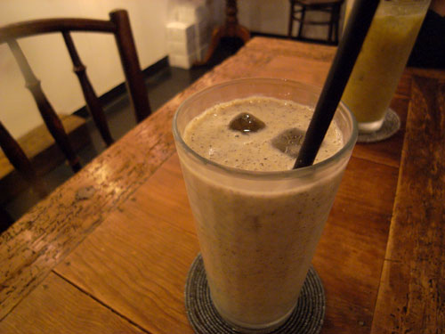 私はスモークサーモン&アボカドのサンドと黒ゴマバナナのジュース。