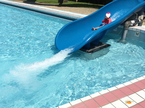 ここのプールには楽しいスライダーもありまして、大人も子供もとにかく滑りまくります。