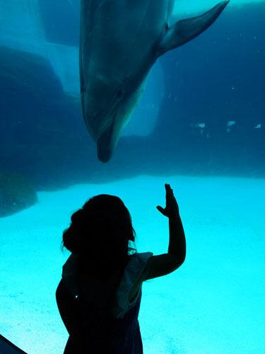 イルカさんたちにかけられた海水でちょっぴりべたべたになった私たちは、