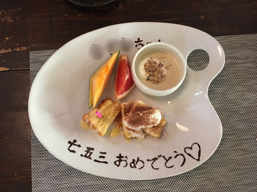 締めのデザートは、お店の方がプレートにメッセージを入れてくれました(^^)