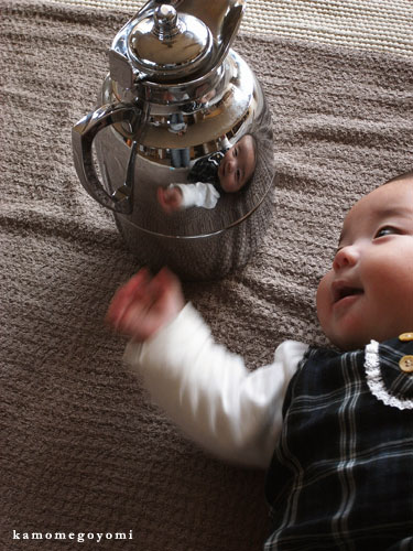 鏡の中に私の顔が見えて不思議そうにじっと見つめていたり。