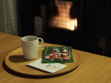 ストーブの前にお茶とお菓子、サンタさんへのお手紙を用意して就寝。
