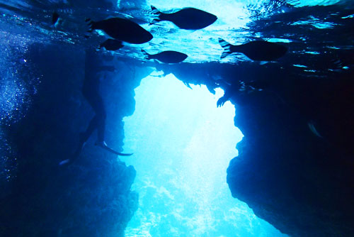 感動の『青』を味わった後は再び洞窟の外へ泳ぎだし、、