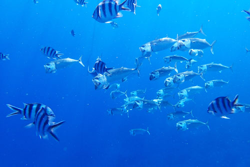 ウミガメなんかもフツーに泳いでいるんですね~。
