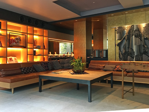 町家風の外観とは裏腹に、ロビーはビンテージ感のあるインテリア。