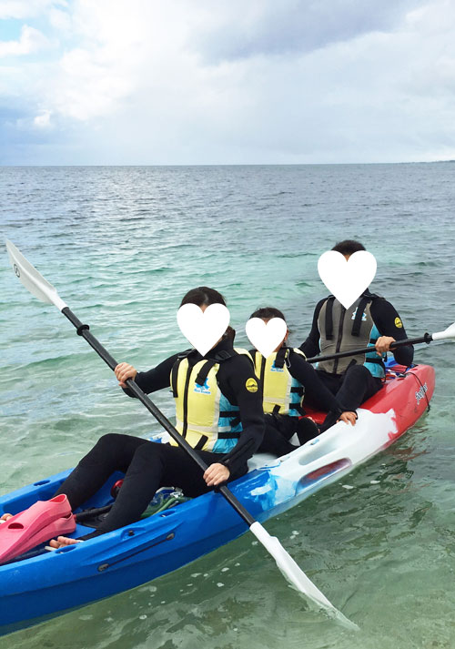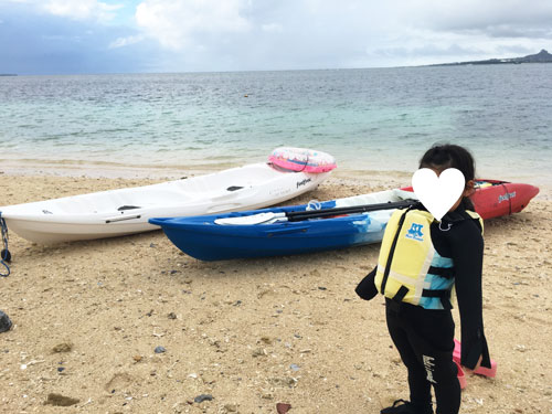 すっかりKさんと打ち解けたムスメは、Kさんのカヤックで戻りました。