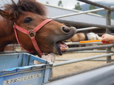 もっとくれ!と言わんばかりの馬と目が合った瞬間の様子(笑)