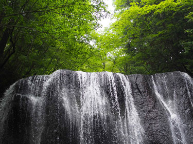 岩から流れる水が何本もの白い筋をつくりだす光景~。