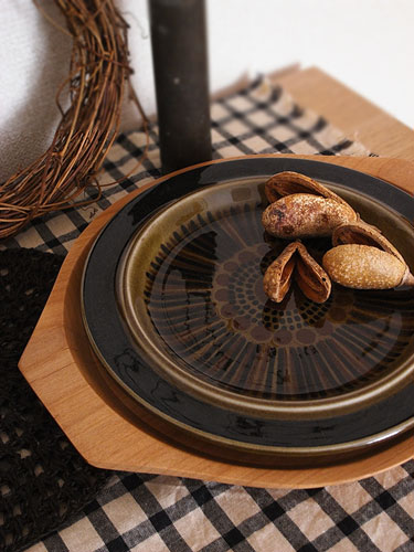 悩むところです。同じ北欧モノということで、ウッディなアンティークカトラリーと合わせて、