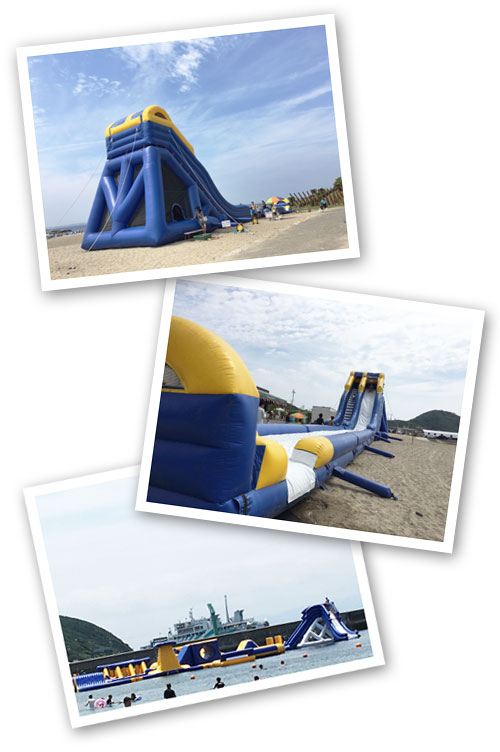 今回の目的のひとつが、、、ビーチに設置された巨大スライダーと