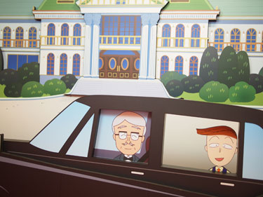 まるちゃんの家の各お部屋を再現したものや、3年4組の教室、