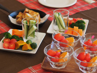 今回のパーティーでは私がお料理担当、お友達がケーキと飲み物を分担。