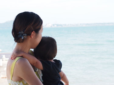 海を見つめるRちゃん親子の姿(^^)