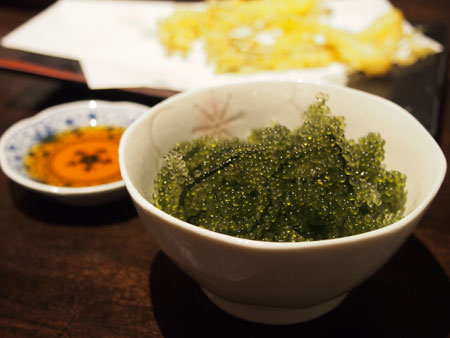 軍艦は海ぶどうのプチプチ食感と塩気にとまぐろの濃厚さがマッチして