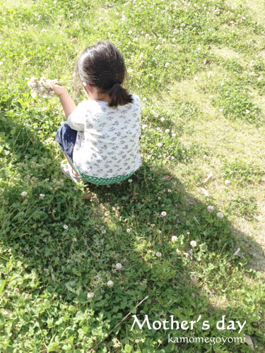 子供たちは草むらのシロツメクサを摘むのに夢中。