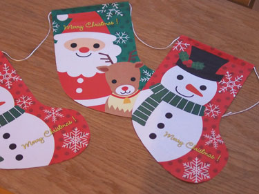 紐でつながった靴下型のペーパーフラッグ☆