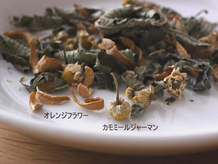 オレンジフラワー、カモミール、レモンバーベナ、レモンバーム。