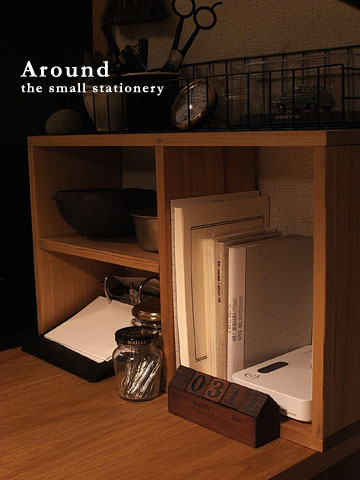 ペンやメモは常にすぐ使えるポジションに。色味も渋めに統一します。