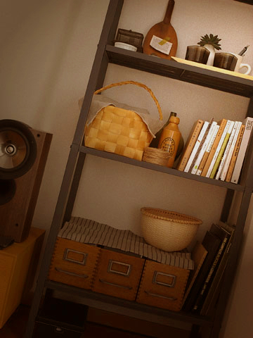(画像はないですが)厚みのある洋書は四角いかごに入れて『見せながら』収納。