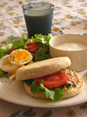 クリームチーズを塗って、ツナ&トマトをサンド。