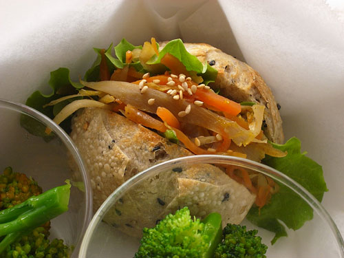 ・ゴマのプチパンでしゃきしゃきキンピラバーガー