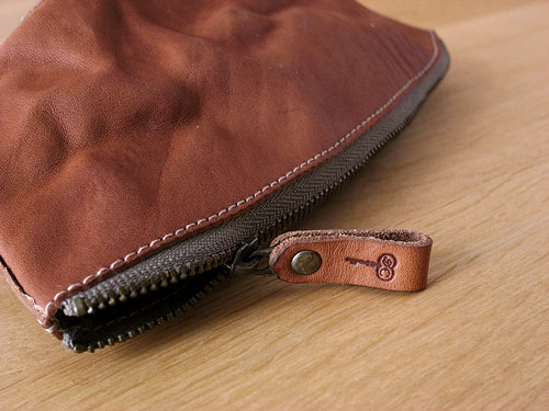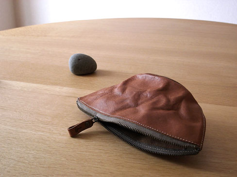 ベジタブルレザーを使ったくしゅっとした風合いの革ポーチです。
