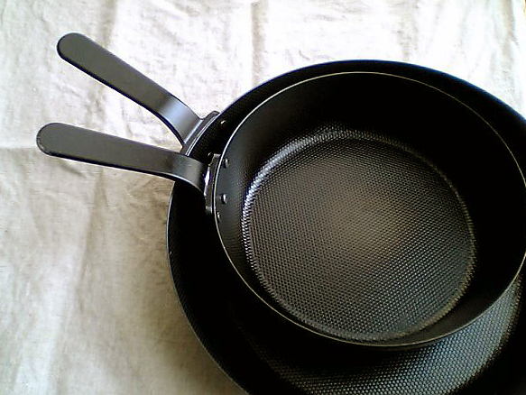 我が家には鉄のフライパンが2サイズ、フッ素樹脂加工のフライパンが2サイズがあり、