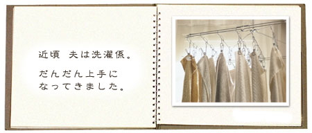 室内干し用の円形の物干しを使いますが、以前は夫の『斬新』な干し方に爆笑^^