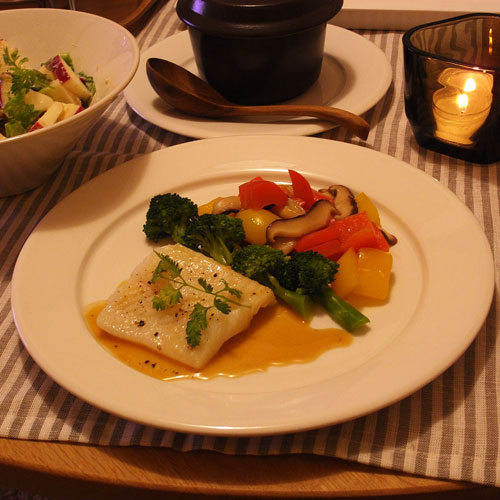 くるみとりんごのサラダ 白身魚の蒸し焼き