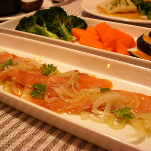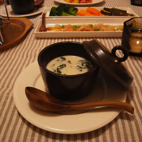 ほうれん草チャウダー スモークサーモンマリネ