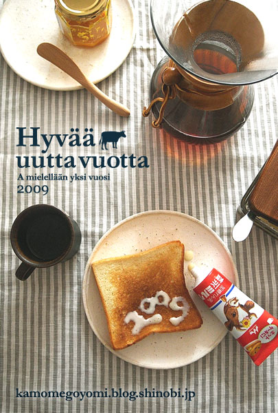 ホッとしました~。今回は自分で撮った写真を使った年賀状^^
