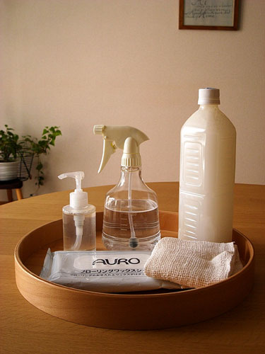 ペットボトルの中も、水で薄めて使うAUROワックス。