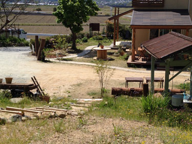 お庭にあるドーム型の石釜からは時折煙がもくもくと流れて