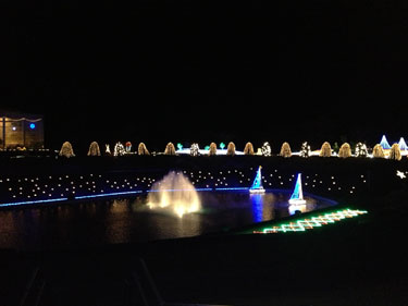 イルミネーションはゲートから池の向こうまでぐるっと歩かせ、