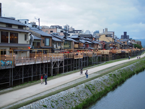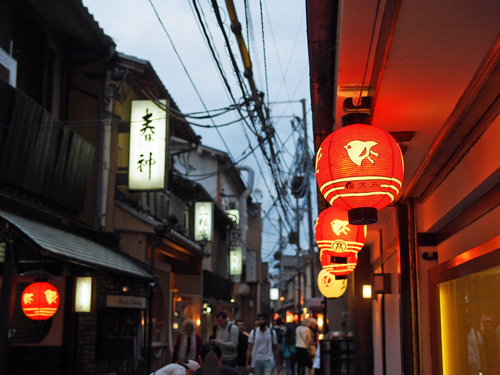 レトロな街並みを眺めつつ、団栗橋から鴨川を東へ渡り、宮川町通へ。
