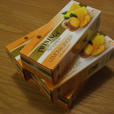 トワイニングのレモン&ジンジャー。安いので冬に備えてたっぷりストックしました^^