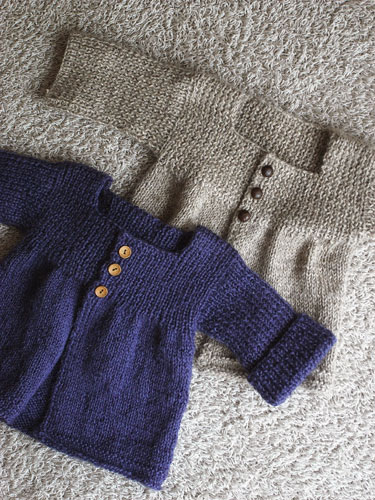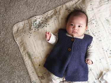 来年着れそうな大き目サイズのニットコートと、今から着れるベスト。