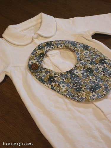 スタイに使った花柄生地をアクセントにした三つ折りタイプ。