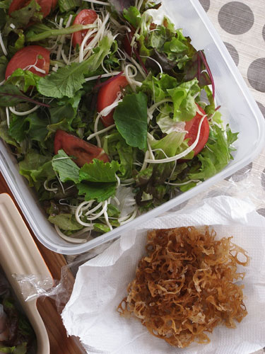 ・レンコンチップサラダ(レンコンチップ・レタス・ベビーリーフ・トマト・スモークチーズ)