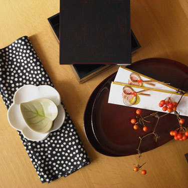 重箱やらおはしやら、いろいろグッズを出してイメージを膨らませています。