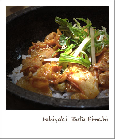下は先週末、韓国料理屋さんで食べた石焼豚キムチ丼。