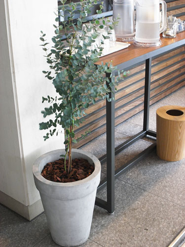 ユーカリをセメントの鉢に植え替えしてもらいました。鉢は少し汚れて味が出てくるのが楽しみ。