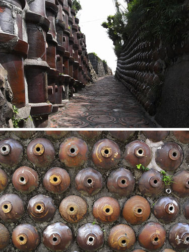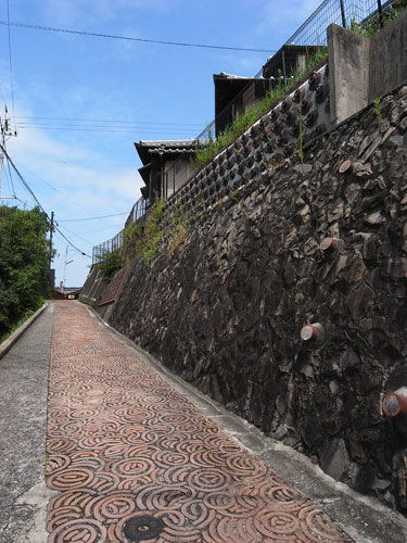 その道には土管や焼酎瓶(?)がごろごろと埋められていました。(左上は有名な土管坂)