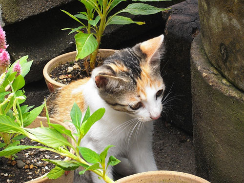 再びやきもの散歩道へと戻り、やきもの屋さんをまわっていると・・・カワイイ子猫に遭遇。