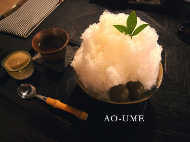 冷た~いかき氷は「青梅シロップ」がかかったさっぱり味。