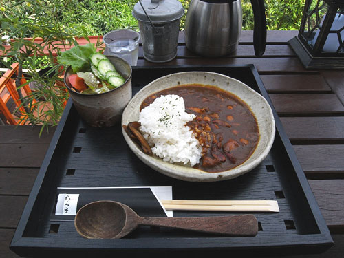 ランチもカレーならまだOKとのことで、外のテラス席に案内されました。